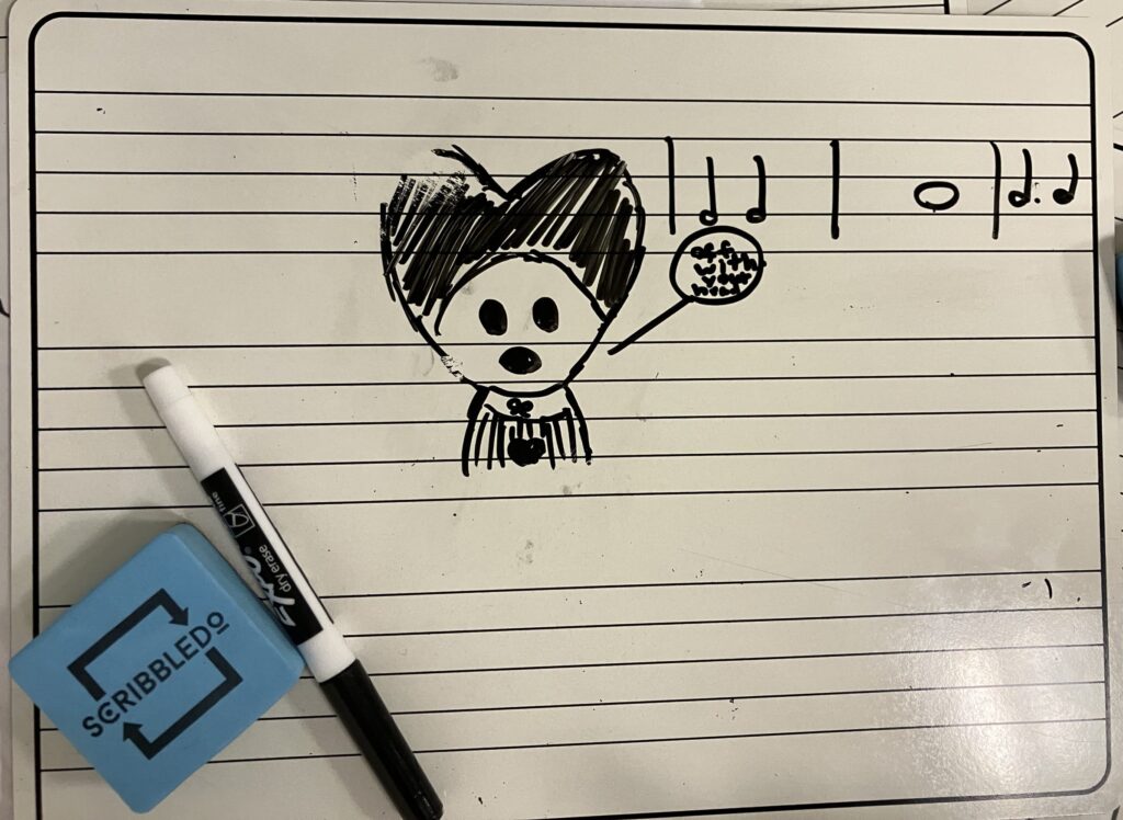 “We learned how to write music and I wrote my one piece called ‘Fishies.’ Also, . . I learned how to play chords and I put them in my song. I love piano!” Millie 2025